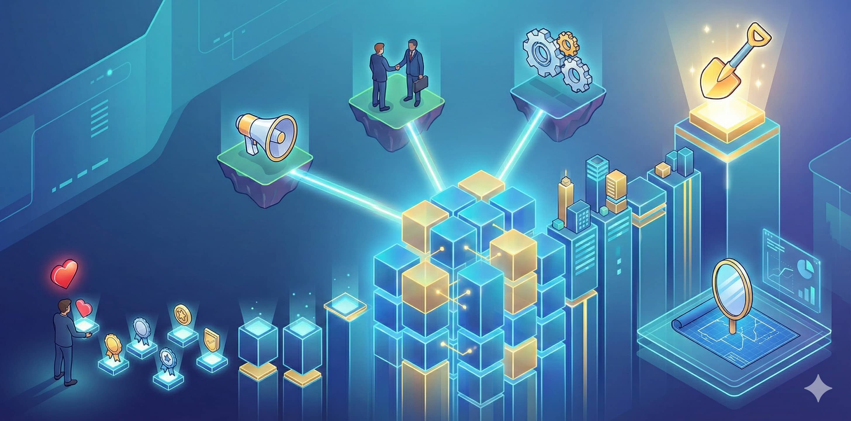 - 改變思維,去處理「生態系基礎建設」。這樣你的項目會跟隨著鏈的市值一起成長。(典型的賣鏟子哲學)